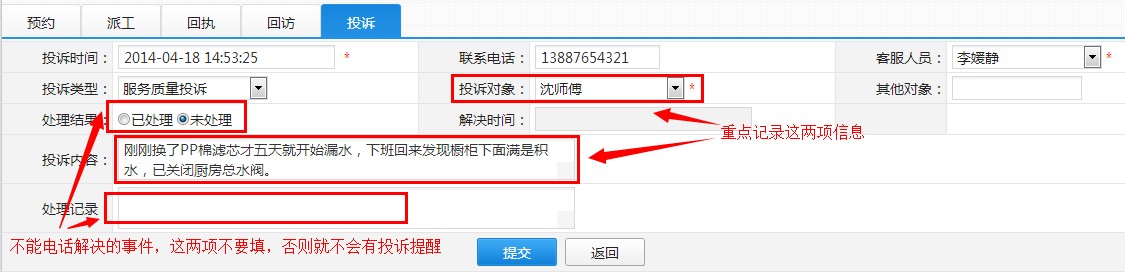 保存提交回执记录,建议三天后在与客户联系回访,因为大多数换芯或安装时的漏水事件,可能不会再当天发生,三天后回访也是为了提醒客户注意检查有无漏水情况发生。